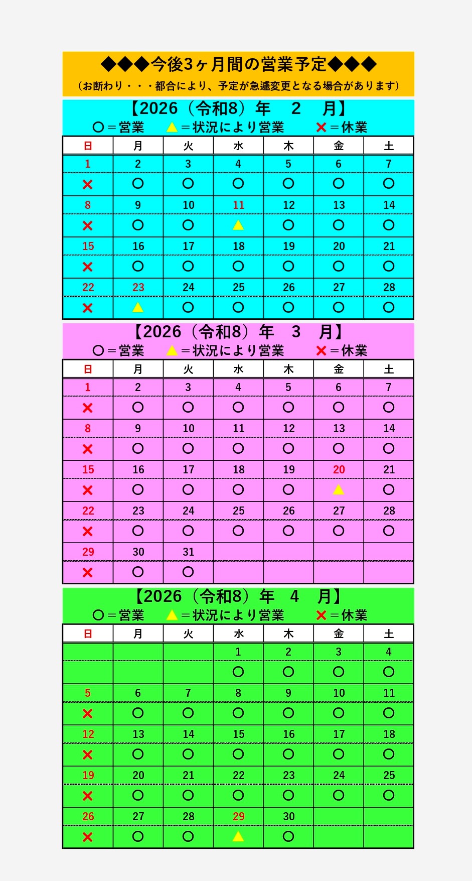 営業カレンダー